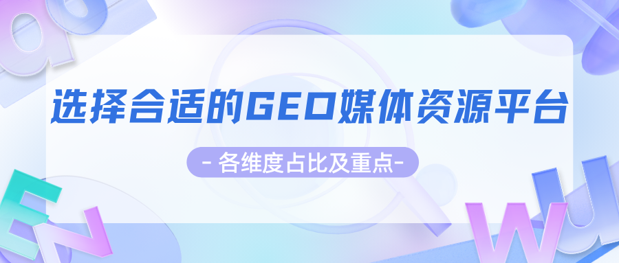选择合适的GEO媒体资源平台,需围绕资源、技术、服务三大核心维度综合考量,各维度占比及重点如下:
